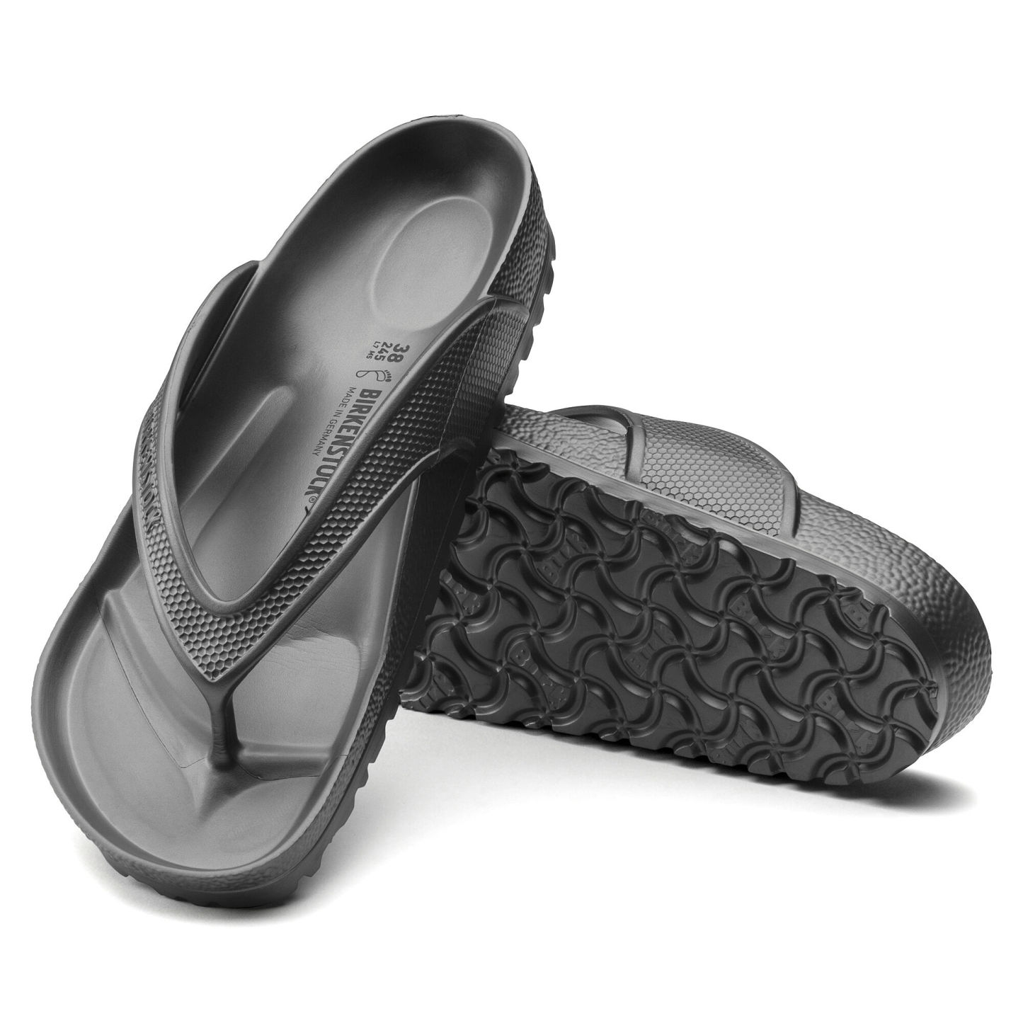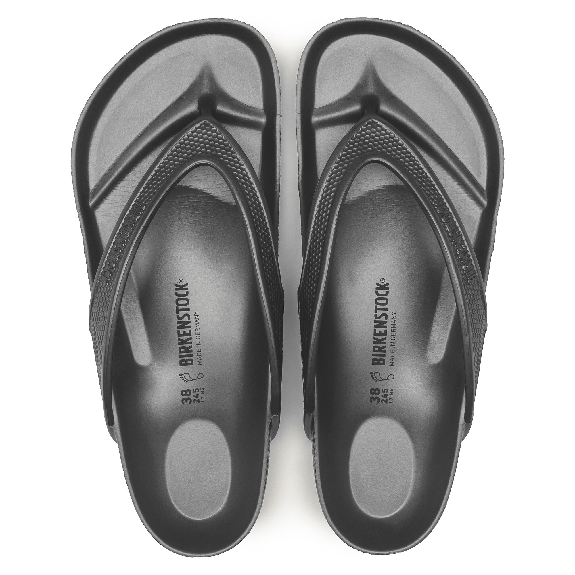 The BIRKENSTOCK Honolulu is a sporty thong sandal with embossed straps. Modeled on the cork sandal, this sandal is made from light, flexible and waterproof EVA.
