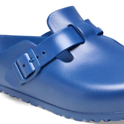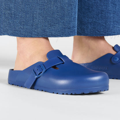 The BIRKENSTOCK Boston is a veritable classic that can easily be worn all year round. The Boston has a legendary status thanks to its sophisticated, individual design. Shown in EVA, a synthetic waterproof and lightweight material.? Super lightweight - great for after the gym or the beach.