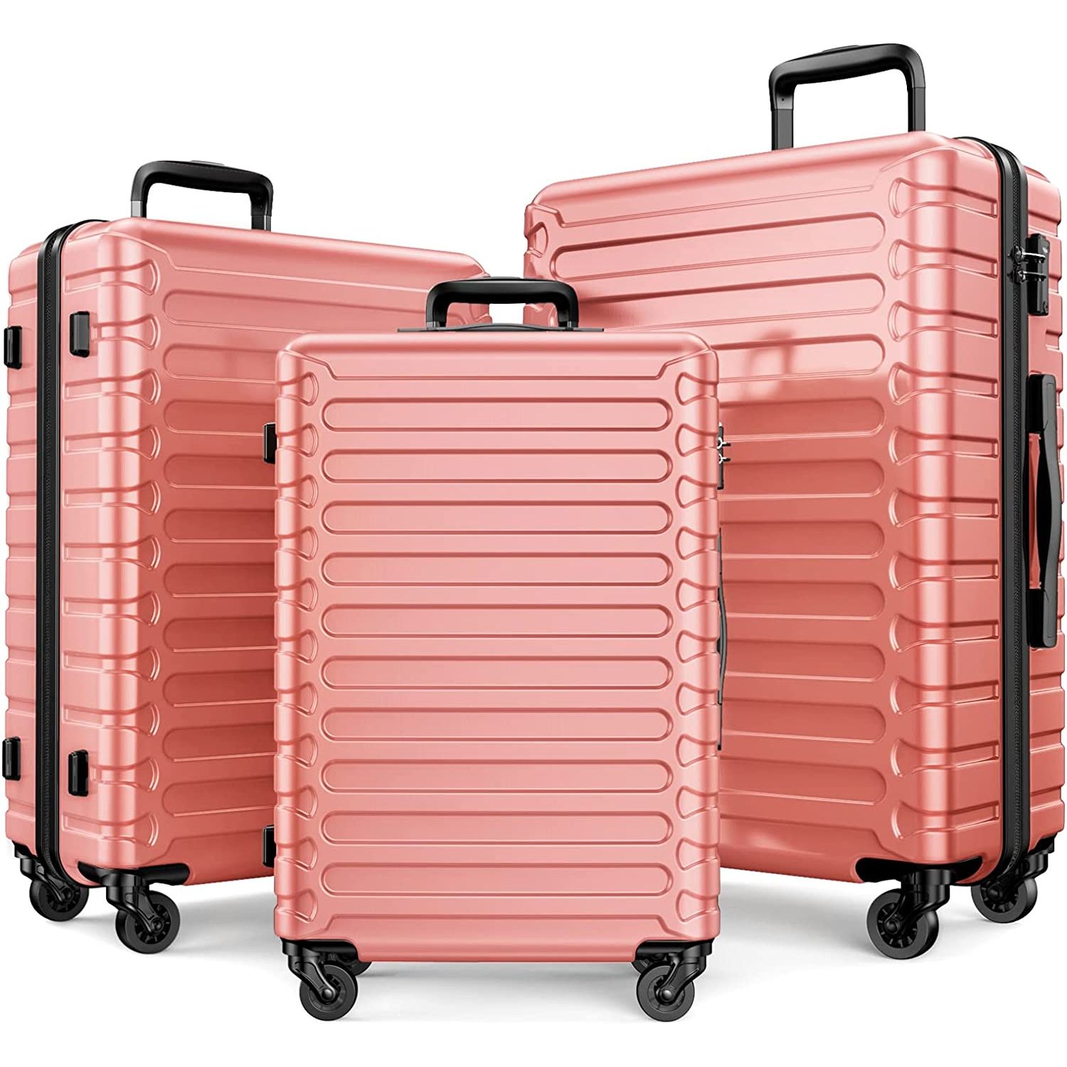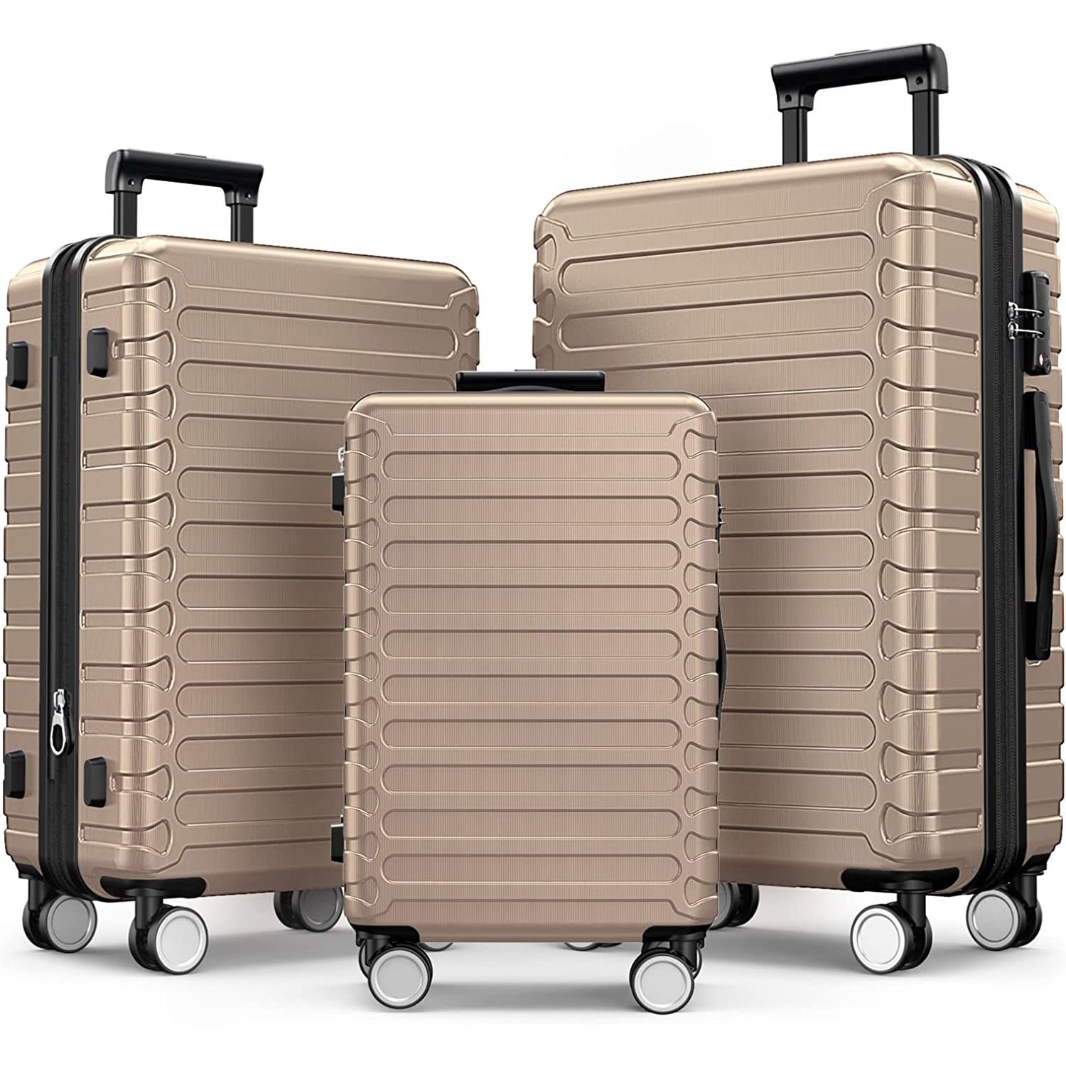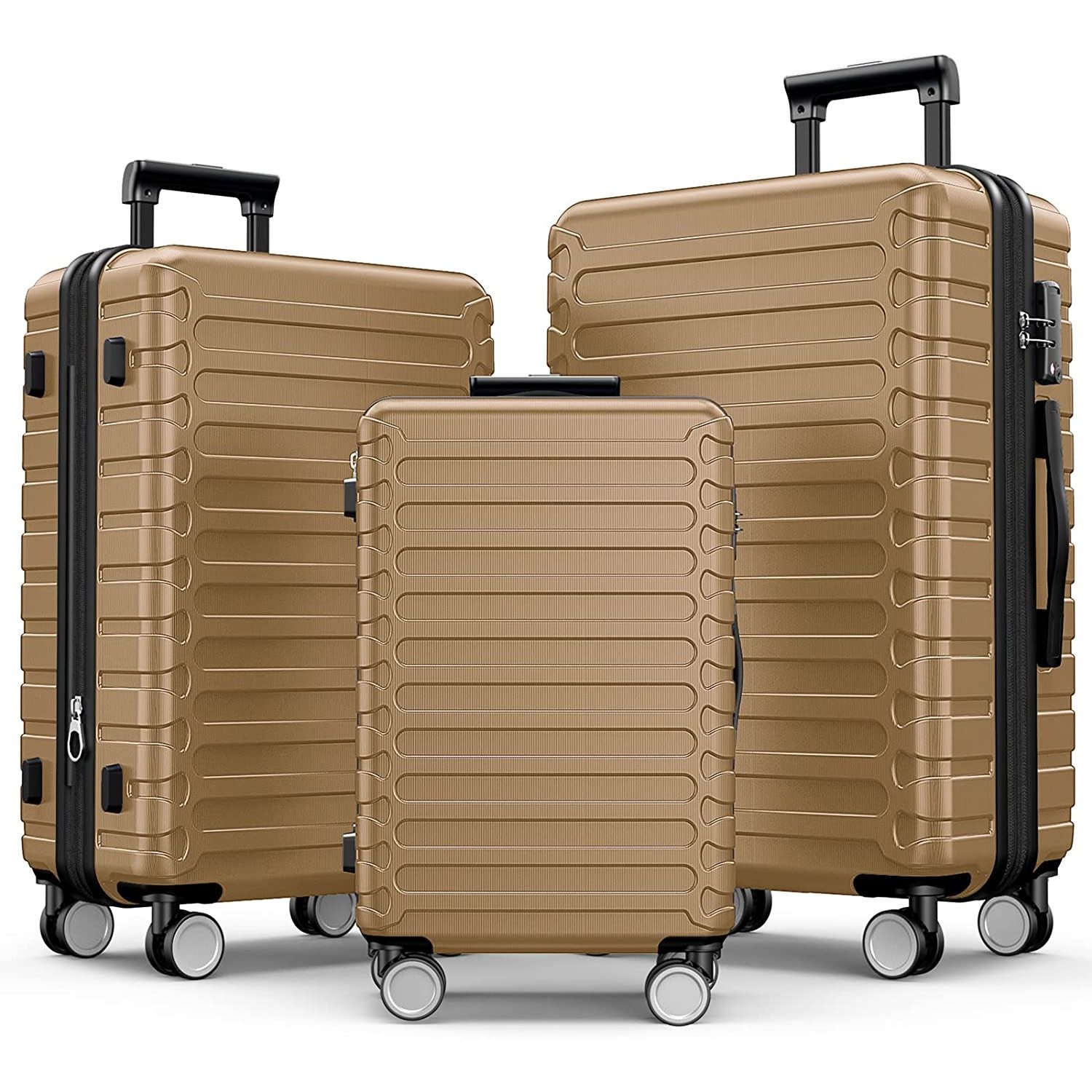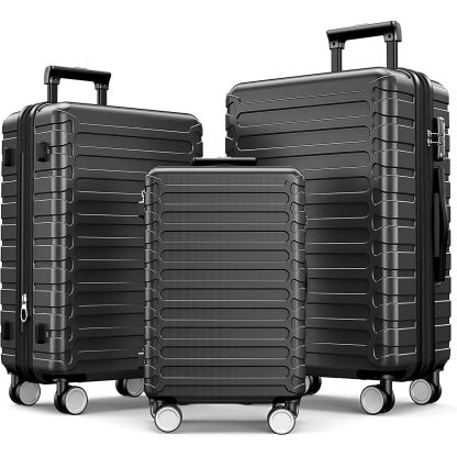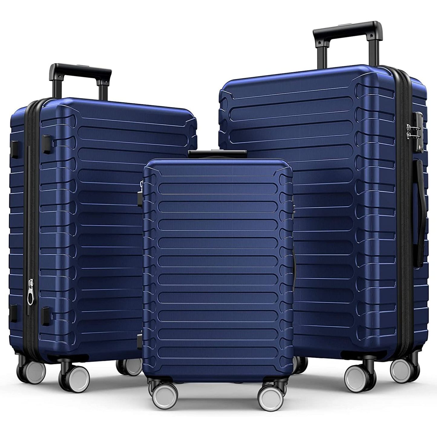 - HIGHT-QUALITY 3 PIECE LUGGAGE SETS: ABS+PC hardshell material, durable and lightweight, with a full glossy features textured finish that resists compression and scratches.